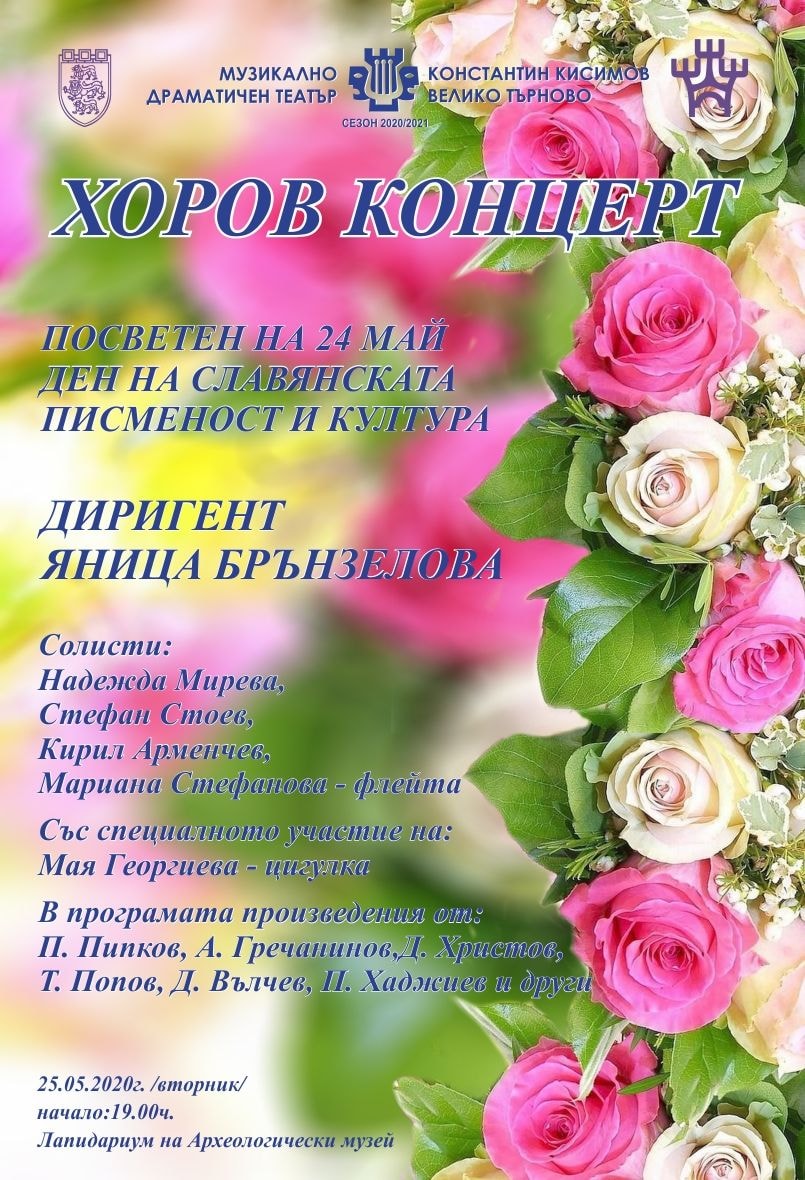 Два концерта, посветени на Деня на българската просвета и култура, ще изнесе екипът на великотърновския театър на откритата сцена в Лапидариума на Археологическия музей в старата столица. На 25 май и на 27 май публиката ще може да се наслади на изпълненията на солистите, хора и музикантите от Музикално-драматичния театър „Константин Кисимов“, представени сред естествения декор на статуи и колони от римската епоха.
